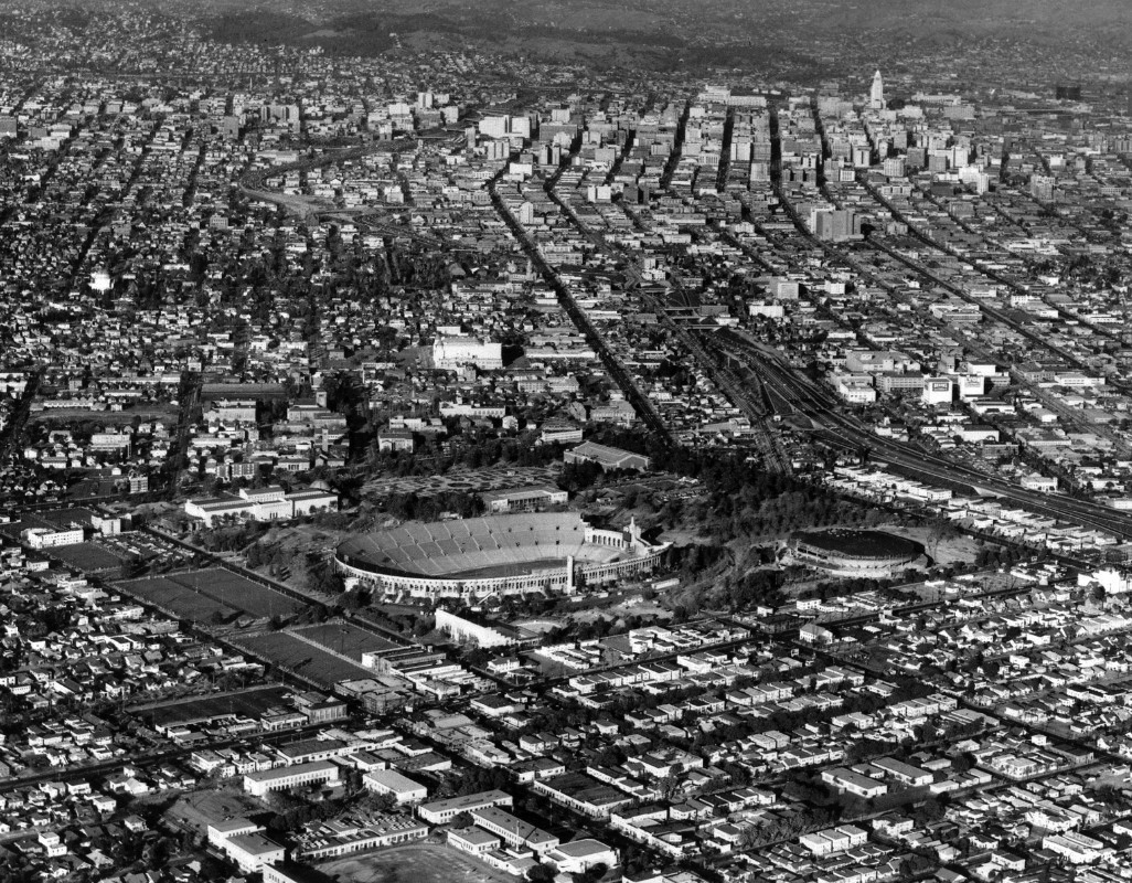 Aerial view showing the Los Angeles Memorial Sports Arena